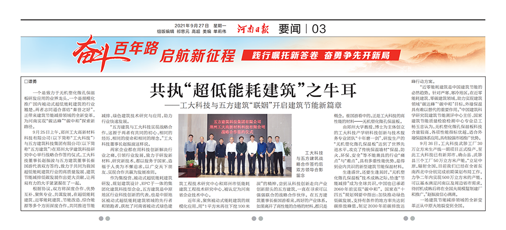 一個(gè)是致力于無(wú)機(jī)塑化微孔保溫板研發(fā)應(yīng)用的業(yè)界龍頭,一個(gè)是規(guī)模化推廣國(guó)內(nèi)被動(dòng)式超低能耗建筑的行業(yè)翹楚,兩者志同道合喜結(jié)“秦晉之好”,正帶來(lái)建筑節(jié)能減排領(lǐng)域的全新變革,為河南實(shí)現(xiàn)“碳達(dá)峰”“碳中和”探索新路徑。