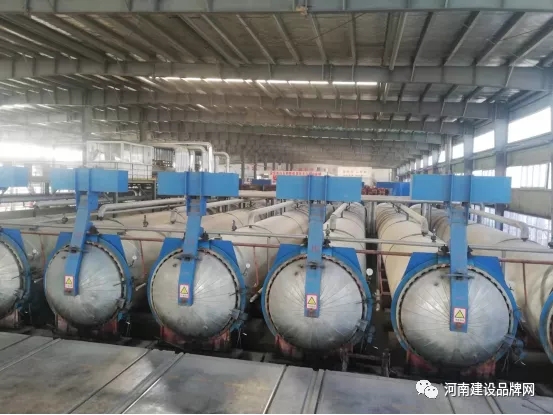 在興安建材常務副總經理司政凱博士帶領下,趙振波一行首先參觀了ALC板生產線,進入巨大車間,仿佛進入機器林立的工業世界:高大的攪拌釜不知疲倦地工作,將攪拌好的漿料倒入長方形模具中;進入植筋工位,機械手抓住鋼絲網片準確放入漿料中,進入養護室;養護成型的大砌塊如頑皮的孩子,在生產線上騰、轉、挪、翻,聽話地進入工位,任由切割鋸的修剪成型,然后排隊進入蒸壓釜;龐大的蒸壓釜橫臥成排,蒸壓養護后的ALC板,進入堆場自然養護。“我們的生產線質量過硬,智能化程度高,生產穩定,產品質量高”,司政凱介紹說。